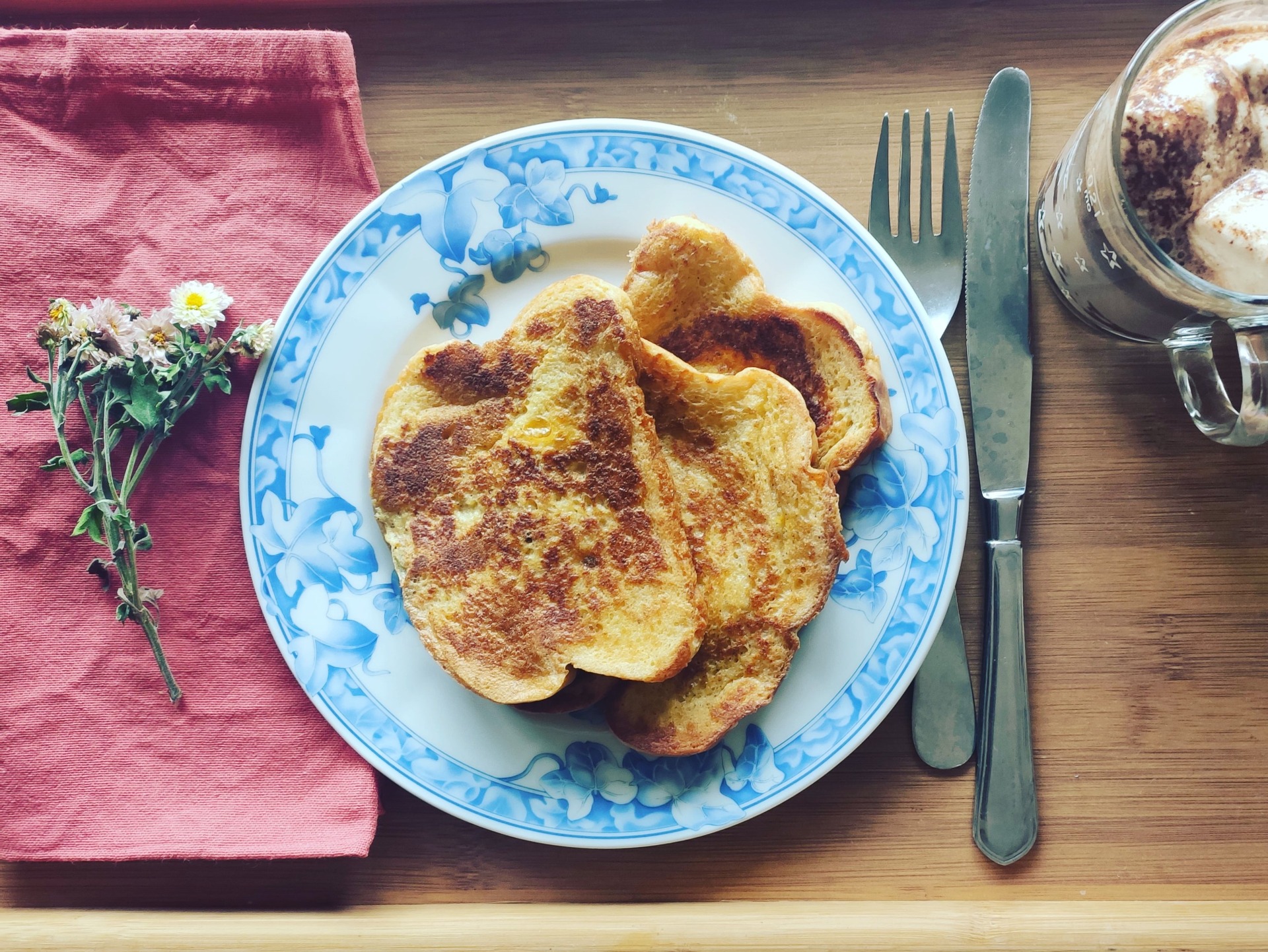 Misture o ovo, o leite, a essência de baunilha e as especiarias numa tigela de sopa e mexa bem. Aqueça uma sertã em lume médio e derreta nela um pouco de manteiga. Molhe as fatias de pão na mistura do ovo e coloque na sertã a fritar. Passados poucos minutos vire. Deve ficar dourado dos dois lados.